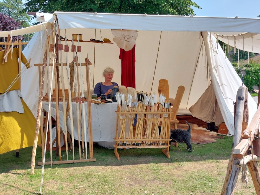 Igennem de sidste kanp 25 år har Ole fremstillet rigtig mange historiske buer og vi har i ligeså lang tid begge skudt med disse. Vi er med i en historisk buegruppe, Iwaz, hvor vi tager rundt på forskellige historiske markeder og formidler om buens historie og brug.